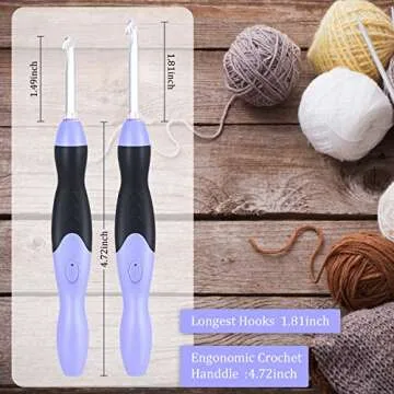 11 Sizes Lighted Crochet Hooks Set Rechargeable Crochet Hook Light Up Hooks with Case, Interchangeable Heads 2.5 mm to 8 mm for DIY Craft Supplies(Purple-Black)