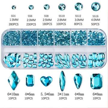 1101Pcs Elegant Blue Nail Rhinestones for Stunning Nail Art and Crafting