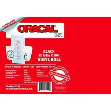 12.125" x 10ft Roll of Oracal 651 Black Craft Vinyl - On a 2.5" Core - Adhesive Vinyl for Cricut, Silhouette, and Cameo Cutters - Gloss Finish - Outdoor and Permanent
