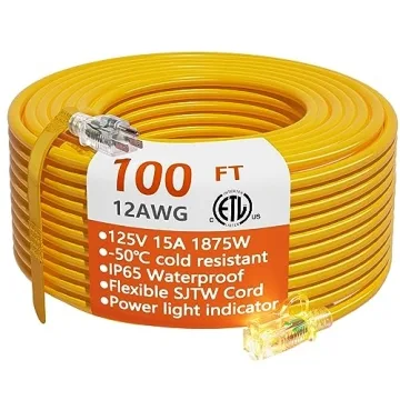 Show moreIntroducing the HUANCHAIN 100 ft Heavy Duty Outdoor Extension Cord, the ultimate solution for your electrical needs. This extension cord is designed with safety and durability in mind, making it perfect for both indoor and outdoor use. Featuring a lighted end that indicates when power is on, you'll never have to guess if your devices are properly connected. With its extra size Male NEMA 5-15P power plug and Female NEMA 5-15R power socket, safety is a top priority, ensuring a secure connection every time. Unlike standard cords, this heavy-duty extension cable is made from thicker materials, providing enhanced insulation and performance, protecting you from potential electrical shocks.