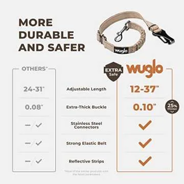 Show moreIntroducing the 12"-37" Wuglo Dog Seat Belt, a revolutionary solution for pet safety during car travel. Designed specifically to provide a secure and comfortable fit for dogs of all sizes, this innovative dog car harness seamlessly adjusts from 12 to 37 inches with just a simple mechanism, ensuring your pet remains safely buckled up on any journey. Not only does it prioritize your furry friend’s safety, but it also integrates a stylish beige color that complements your vehicle's interior while delivering peace of mind during travels.