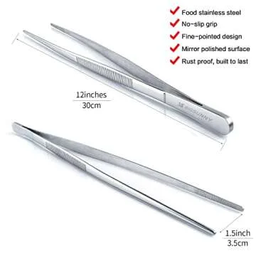 12 Inch Kitchen Tweezers Fine Tweezer Tongs, MSY BIGSUNNY Stainless Steel Food Tweezers Multi-function Precision Serrated Tips Cooking Tongs Kitchen Serving Tong