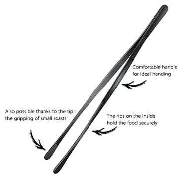 Constructed from high-quality stainless steel, these tweezers feature a food-grade black coating that not only enhances their aesthetic appeal but also vastly improves their resistance to heat and wear. Whether you are lifting that delicate piece of fish or arranging intricate garnishes, these tweezers provide the perfect balance between functionality and comfort.