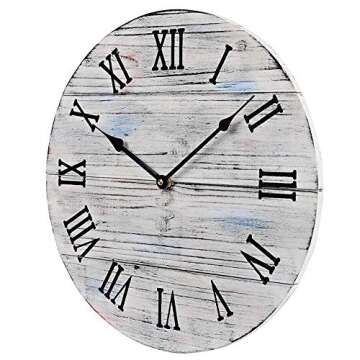 12 inch Rustic Farmhouse Vintage Wooden Painted Wall Clock - Distressed White - Battery Operated