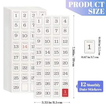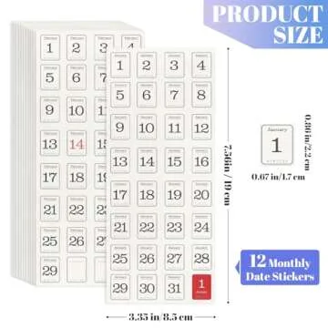 The thoughtful design of each sticker adds a minimalist touch to your planning tools. Each sheet measures approximately 3.35 x 8.07 inches and includes 32 date stickers, each measuring 0.67 x 0.83 inches. This compact size allows for easy transport and storage, whether you’re at home or on the go.