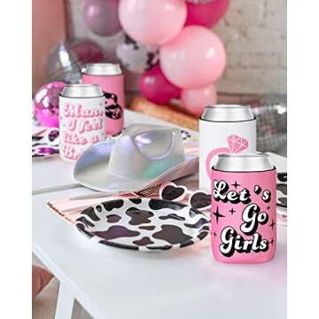 12-Pack Disco Cowgirl Bachelorette Party Can Sleeves – Let's Go Girls Accent Beverage Coolers for Brides and Friends!