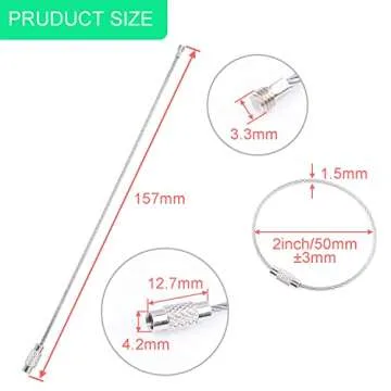 12 Pack Metal Luggage Tag Loops Holder Women 6" Wire Keychain Cable Key Chain Rings for Crafts Keyrings Bag Tassels Jewelry Making (12 Assorted Color, 1.5mm)