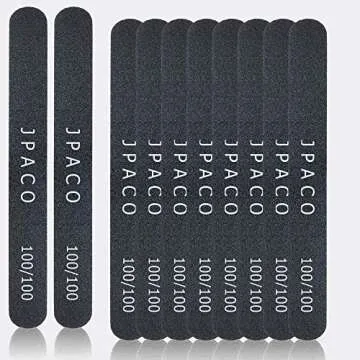 12-Pack Professional Nail Files: Double-Sided 100/180 Grit Emery Boards for Natural, Acrylic, Poly, and Gel Nails - Washable Black Manicure Tools Set by JPACO