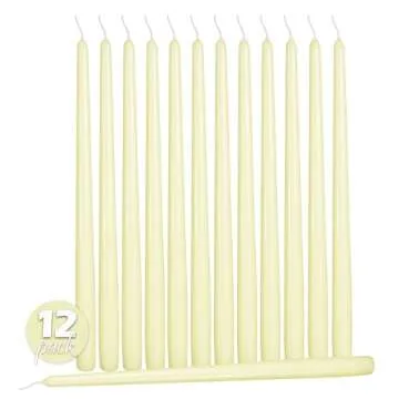 Show more Elevate your dining experience with our exquisite 12 Pack Tall Taper Candles, standing at a graceful 12 inches tall. Crafted meticulously with premium 100% paraffin wax and pure cotton wicks, these ivory-colored candles not only bring a classic elegance to your table settings but also provide a long-lasting burn time of up to 10 hours. Perfect for both intimate dinners and grand celebrations, these candles seamlessly blend functionality with aesthetic appeal, ensuring a delightful ambiance all evening long.