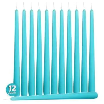 12 Pack Tall Taper Candles - 12 Inch Light Blue - Turquoise Dripless, Unscented Dinner Candle - Paraffin Wax with Cotton Wicks - 10 Hour Burn Time
