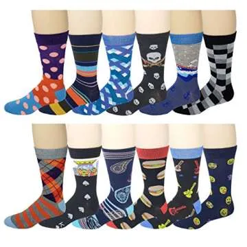12 Pairs Colorful Dress Socks - Assorted Fancy Designs for Men