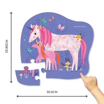 Show moreIntroducing the Unicorn Magic Jigsaw Puzzle by Crocodile Creek, a delightful 12-piece beginner puzzle tailored specifically for kids aged 2 years and up. This charming puzzle features vibrant colors and captivating unicorn illustrations that are sure to enchant your little one's imagination. With dimensions of 12 x 9 inches, it’s perfectly sized for tiny hands to grasp easily and assemble. Each puzzle piece is crafted from sturdy cardboard, ensuring they can withstand the enthusiastic play and exploration often seen in toddlers. Crocodile Creek places a strong emphasis on safety and durability, making this puzzle an exceptional choice for young children.