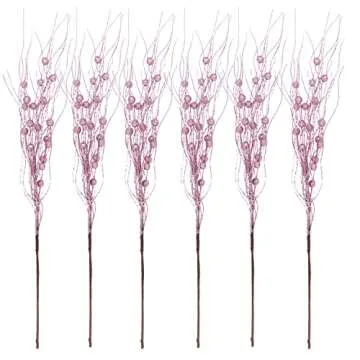 12 Pcs Artificial Glitter Berry Stems for Christmas Tree Picks Curly Sprays Faux Glitter Berry Branches Christmas Tree Twigs Filler Decorations Festival Wreath Supplies Table Centerpiece (6, Pink)