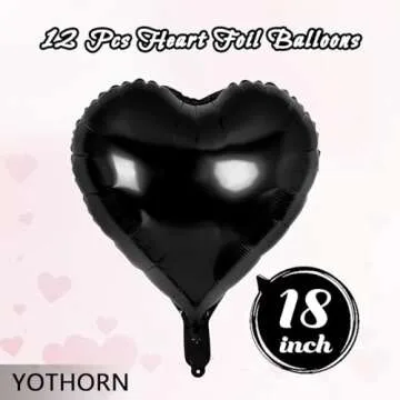 12 Pcs Black Heart Balloons - 18 Inch Heart Foil Mylar Balloons for Birthday Party, Wedding, Baby Shower & Valentine Day Decorations