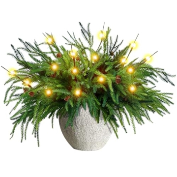 Enhance your holiday décor with the stunning Perfect Norfolk Pine Branches with light package, designed to bring a festive atmosphere into any space. This exceptional product includes 12 beautiful Norfolk pine stems, each measuring 17.8 inches, complemented by a pack of 28.3-inch lighted branches. The branches feature bendable, iron twig wires, allowing you the creative freedom to shape them as per your decorative needs. Crafted from high-quality plastic, these faux branches mimic the lush, vibrant green...