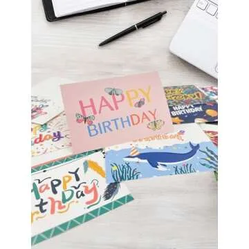 12 Pcs Happy Birthday Cards Set Bulk Assorted Blank Birthday Cards with Envelopes Multicolo