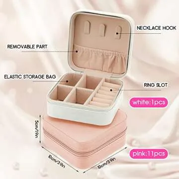 12 Pcs Travel Jewelry Case Bridesmaid Gift Boxes Jewelry Travel Organizer Small Jewelry Box Mini Storage Organizer Storage Box for Women Girls Bridesmaid Gift (White, Pink)