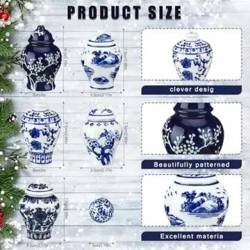 12 Pcs White and Blue Ginger Jar Christmas Ornaments Mini Porcelain Hanging Ornaments Ball Chinoiserie Christmas Ornaments Ball Chinoiserie Porcelain Christmas Vintage Decor for Christmas Tree