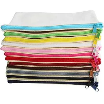 Show moreIf you're looking for the perfect blend of style, functionality, and creativity, look no further than our 12 Pieces Multicolored Cosmetic Makeup Pouches. Made from high-quality, durable cotton canvas, each bag is designed to be both sturdy and soft, ensuring it can withstand the rigors of daily use while keeping your items safe and organized. Each pouch features unique colored zippers that perfectly match the lining, adding a touch of elegance and individuality to your storage needs. Whether you're using them for cosmetics, school supplies, or travel essentials, these bags cater to all your organizational needs.