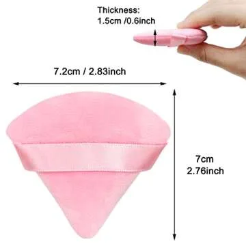 12 Pieces Pink Cosmetic Powder Puff,2.76 inch Portable Soft Sponge Setting Face Puffs,Triangle Velvet Powder Puff with Ribbon Band Handle for Loose Powder Body Powder Makeup Tool