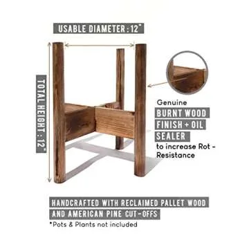 Show moreTransform your indoor garden with the stunning 12'' Plant Stands Indoor Mid Century Plant Stand by Garden Elegance. Crafted from 100% American Pine Wood, these stylish stands boast a unique Weatherproofing Shou Sugi Ban Burnt Wood Finish, ensuring both durability and aesthetic appeal. Each stand is designed for effortless assembly, including a handy screwdriver that makes setup a breeze. The ability to reverse the stands allows you to customize the height to perfectly suit your plants, creating an elegant display that enhances any room's decor.