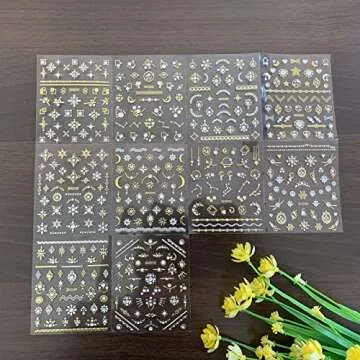 Our stickers are a breeze to use! Simply peel off the desired design, stick it onto your nails, and finish with a top coat to maintain that beautiful luster. This user-friendly approach makes it easy for anyone, from beginners to experienced nail artists, to achieve gorgeous nail art. With 12 distinct designs, including floral motifs, whimsical stars, and sleek geometric shapes, you'll have endless possibilities for creativity.