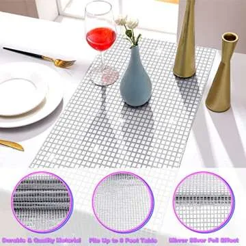 Show moreTransform your dining experience with our exquisite Silver Table Runners, designed to elevate the ambiance of any gathering. This remarkable package includes two table runners, perfect for enhancing a variety of occasions with elegance and style. Crafted with a blend of polyester and cotton, these table runners boast impressive durability, providing water and oil resistant properties that protect your surfaces while ensuring they remain vibrant over time.