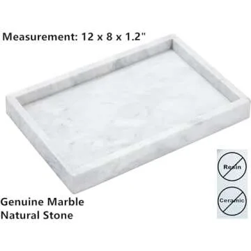 Show moreWelcome to elegance in simplicity with our **12"x8" Real Natural Marble Vanity Tray**. This tray is crafted from genuine natural marble, each piece unique in texture and color, embodying the essence of sophisticated home decor. Whether you're looking to organize your cosmetics, showcase your jewelry, or elevate your bathroom aesthetics, this tray delivers. The sturdy construction ensures durability, while its non-resin and non-ceramic design guarantees safe handling of various items. Ideal for both bathrooms and kitchens, this tray adds a touch of luxury to any space while effectively preventing moisture damage from spills.