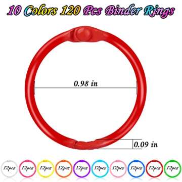 120 pcs Loose Leaf Binder Rings, Flash Card Rings, Colorful Metal Book Rings, Rainbow Color Heavy Duty Notebook Rings, Keychain Key Rings, 1 Inch 10 Colors