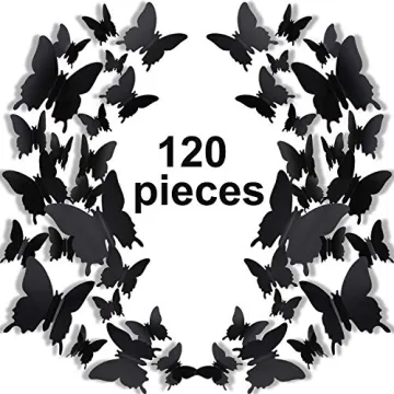 Show moreTransform your living space into a magical sanctuary with the 120 Pieces 3D Butterfly Wall Stickers. These exquisite decorative decals will flutter beauty and charm into any room, making them a perfect addition for your baby's nursery, your daughter's room, or even as elegant décor for a wedding celebration. This package features a total of 120 butterfly decals in three stunning sizes—8 x 8 cm (3.15 x 3.15 inches), 6.5 x 6.5 cm (2.56 x 2.56 inches), and 11 x 11 cm (4.33 x 4.33 inches)—available in a chic black color that blends seamlessly with any interior aesthetic. The collection provides you ample opportunity to mix and match these butterflies, crafting a delightful, layered look that enhances your home’s ambiance. Each butterfly is designed with precise detail to closely mimic the appearance of real butterflies, adding a touch of playful elegance to your décor. Enjoy the versatility of these decals to create unique arrangements on your walls, fridge, or any flat surface, while effortlessly changing up your design whenever the mood strikes.
