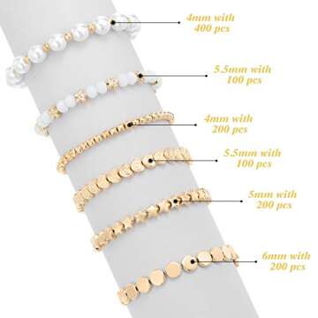 Show more Unleash your creativity with these exquisite assorted spacer beads that come in a grand total of 1200 pieces. This extensive package includes a delightful variety of designs: 200 pieces of star beads, 100 pieces of flower beads, 200 pieces of square beads, 200 pieces of flat disc beads, and 400 pieces of 6 mm round ball beads along with 100 pieces of heart spacer beads. Whether you're crafting a stunning piece of jewelry or exploring new DIY projects, these beads are tailored to meet your every need.