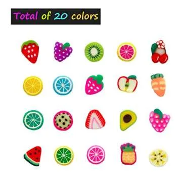 Show more Discover the joy of creativity with our 12000 Pcs Fruit Slices Nail Art Slices. This vibrant set comprises 20 different styles of 3D polymer clay fruit slices, including delightful options such as strawberry, banana, apple, kiwi, watermelon, grape, dragon fruit, lemon, pineapple, and more! Each design is meticulously crafted, ensuring you receive approximately 600 pieces of each fruit type—a total of about 12000 pieces. Perfect for those who love to dive into DIY art projects or enhance their nail art, this product transforms ordinary creations into stunning works of art.