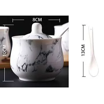 123Arts Ceramics Marbling Sugar Salt Pepper Storage Jar Seasoning Pot with Lid And Spoon