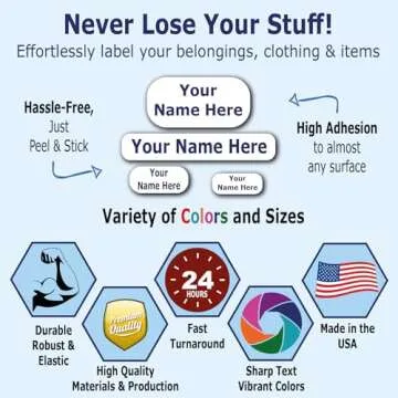126 Personalized Waterproof Name Labels. Press and Stick Multi use Custom Name Labels. Highly Durable Customized Name Stickers with Permanent Self Adhesive. Great for School, Daycare or Camp
