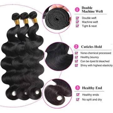 12A Body Wave Bundles Human Hair Brazilian Virgin Body Wave Human Hair Bundles 100% Unprocessed Virgin Weave 3 Bundles (14 16 18 Inch) Human Hair Natural Black Color Hair Extensions for Black Women