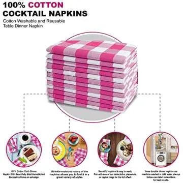 Show moreIntroducing the 12Pack 100% Cotton Yarn Dyed Gingham Check Dinner Napkins, your new go-to for adding a touch of elegance and charm to your dining experience. Crafted from 100% soft, durable cotton, these napkins measure 18x18 inches, making them perfect for any occasion, whether you're celebrating a special event or simply enjoying a family dinner. The classic pink and white gingham check pattern brings a stylish and versatile flair that complements both formal and casual settings alike.