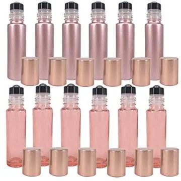 Show more Discover the luxurious and practical 12-pack 10ml Roller Bottles for Oils by BOXIN, designed for enthusiasts of essential oils, perfumes, and customized blends. This exquisite set features six elegant rose gold bottles and six stunning clear pink bottles, crafted from thick glass to not only enhance the visual appeal but also to provide superior protection against UV rays, keeping your precious oils safe from rapid evaporation. Each bottle has a no-leak roller ball that ensures precise application, allowing you to easily apply your oils exactly where you want them, whether it's on your wrists, chest, or neck.