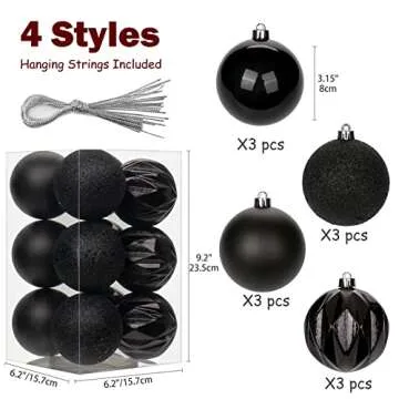 12PCS 3.15" Christmas Ball Ornaments Shatterproof Black Christmas Tree Decorations Xmas Tree Balls Halloween Ornaments Décor