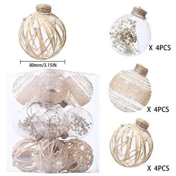 Show moreStep into the festive season with the exquisite Large Christmas Ornaments Balls 2023. This beautiful set of 12 ornaments, each measuring 80mm (approximately 3.15 inches), adds a perfect blend of charm and modernity to your Christmas tree. Crafted with intricate designs including burlap accents and mesmerizing glitter details, these ornaments are more than just decorations; they are delightful works of art that elevate your holiday decor.