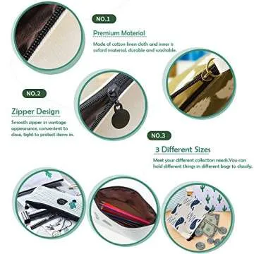 Show moreIntroducing the **12Pcs Canvas Pencil Case by AUHOKY**, a must-have for those who appreciate organization fused with charm. This delightful set features three unique sizes and six adorable patterns inspired by nature and animals, making them a perfect fit for any personality, whether for school essentials, makeup storage, or everyday items. Each pouch is crafted from high-quality canvas material, ensuring durability while maintaining a lightweight design that's perfect for carrying in your bag. Featuring smooth zippers for easy access, these versatile pouches can be used to store everything from pens and pencils to cosmetics and coins, combining practicality with stylish design.