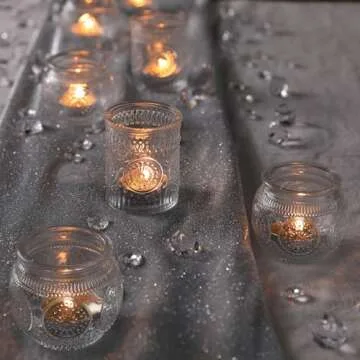 12pcs Clear Assorted Votive Candle Holders for Table Centerpieces, Glass Tea Lights Candle Holder for Wedding Decorations, Vintage Boho Home Tea Party Decor, Sunflower Decorations