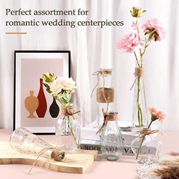 Show moreIntroducing the 12pcs Small Glass Vase Set for Centerpieces – the perfect way to infuse warmth and sophistication into your home or event! Thoughtfully crafted by Eathtek, this exquisite set of mini clear bud vases brings a delightful touch of nature indoors, showcasing your favorite floral arrangements in style. Each piece features a charming rope design that adds a rustic elegance, making it an ideal choice for any decor style. Whether you are looking to adorn your dining table, mantel, or create an enchanting centerpiece for a wedding, these versatile vases are your go-to option. Their unique shapes are designed to complement various sized bottle necks, allowing you to display everything from wildflowers to delicate blooms effortlessly.