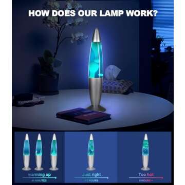 Measuring at a convenient 13.5 inches, this small volcano lamp showcases a spectacular liquid motion that mimics a volcanic eruption, offering a dynamic visual experience. The soothing blue liquid and soft white wax create a nostalgic ambiance that is ideal for both adults and kids, turning any room into a relaxing oasis. Whether placed in a living room, bedroom, hallway, or kids' room, it radiates a warm glow that's comforting and serene, making it perfect for bedtime.