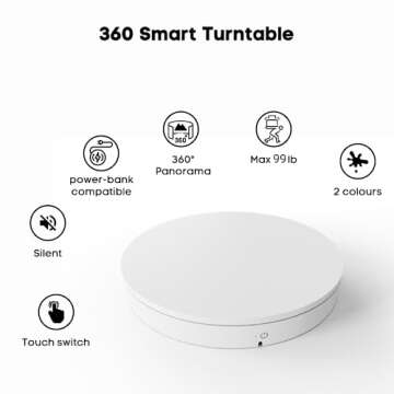 13 inch White Smart Turntable Large Rotating Display Stand with Remote Commercial Product Photography Turntable 99lb Capacity 360 Photo Booth from Shot to Export in Minutes