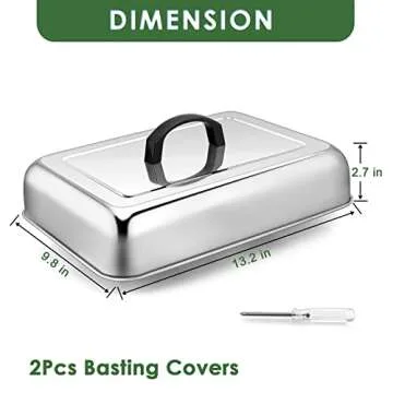 Show moreIf you're passionate about outdoor cooking or simply want to elevate your kitchen skills, look no further than the 13 x 9.8 Inch Basting Cover Melting Domes by Joyfair. Crafted from pure stainless steel, these high-quality covers are designed to withstand high temperatures without releasing any toxic substances. This makes them not only durable but also safe for your daily cooking needs. Each dome is constructed with heavy gauge material, ensuring that they resist deformation and are rust-free. They are also dishwasher safe, making clean-up a breeze.
