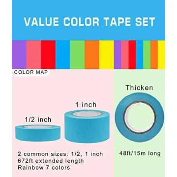 14 PCS Masking Painters Tape Colored 1 Inch 1/2 Inch with Dispenser - Rainbow Masking Tape 14 Pack X 16Yards - Multi Color Paper Tape for Kid Craft, Box Labeling,Teachers Classroom Floor Decorative