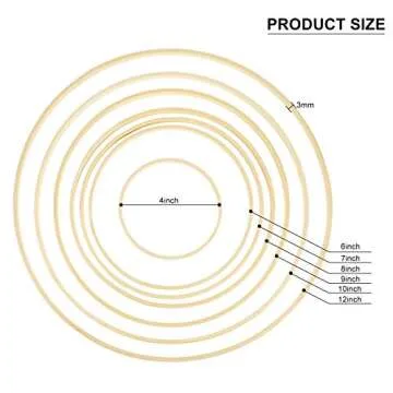 14 Pieces 7 Sizes Wooden Bamboo Floral Hoop Set Macrame Craft Hoop Rings Wreath Round Wooden Hoops for DIY Wreath Decor Dream Catcher and Crafts Making (4/6/ 7/8/ 9/10/ 12 Inch)