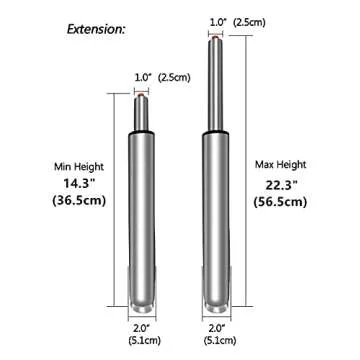 Show moreTransform your seating experience with the **14" to 22" Long Adjustable Gas Lift Cylinder Tube**, designed specifically for rolling stools, gaming chairs, and office chairs. This heavy-duty hydraulic pneumatic cylinder showcases a smooth rise and fall mechanism, allowing seamless adjustment to your preferred height with a full 360-degree rotation that enhances your mobility. Expertly crafted with high-quality materials and a robust outer steel layer, this gas lift cylinder is engineered for both performance and durability. Certified by SGS (USA) and LGA (GER), it supports an impressive weight capacity of up to **450 lbs**, ensuring it can withstand extensive daily use. Elevate your chair's functionality and invest in comfort with this reliable replacement part that promises longevity and effortless use.