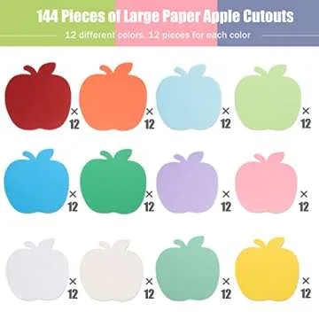 Show moreTransform your classroom and craft time with the vibrant 144 Pcs Fall Apple Cutouts. These delightful apple-shaped paper cutouts come in an assortment of 12 stunning colors, ensuring that every project pops with autumnal charm. Measuring 5.9x5.9 inches, each cutout is crafted from durable 250g card paper, allowing them to withstand the rigors of classroom fun while remaining smooth to the touch for easy writing and decorating. Perfect for preschool and elementary children, these cutouts facilitate imaginative exploration through arts and crafts!