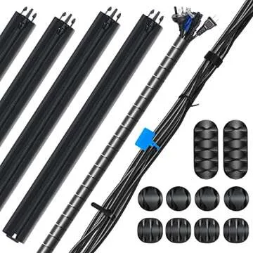 147pcs PC Cable Management kit,1 Cord Sleeve 4 Cable Sleeve with Zipper 10 Cable Clip Holder,10pcs and 2 Roll Self Adhesive tie and 20 Cable Zip Ties Tags and 100 Fastening Cable Ties for Cord (Black)